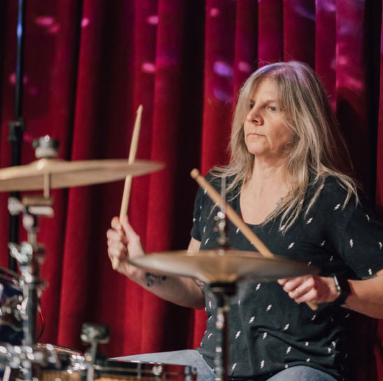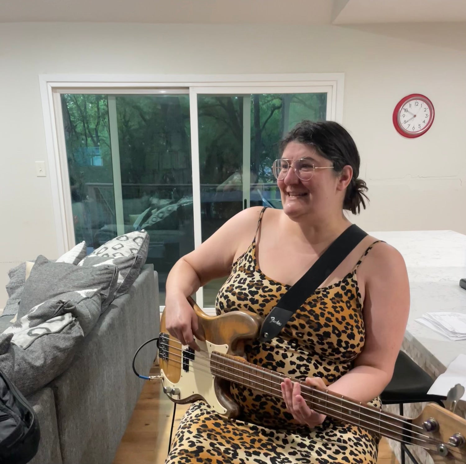 As a California native/naturalized Texan, Andrea grew up in a small, conservative suburb of Dallas and got to Austin as soon as she could. Involved in church choir, piano, and concert band from a young age, Andrea was raised on the power of music. While spending her teen years in marching band and drum line, she started a garage band and that was the beginning of her love affair of writing and playing original rock music with like-minded musicians. After living and gigging in Dallas, Austin, then NYC, Andrea returned home to Austin and has been a regular part of Austin’s post-punk music scene for several years. Now, joining Exploding Violets, she is ready to unite her passions for playing music and fighting the patriarchy. When not hitting the skins, Andrea can be found laughing with her wife, eating all the chips and salsa in her path, enjoying nature, and working to fuel the fire of social justice and the arts in her kids.